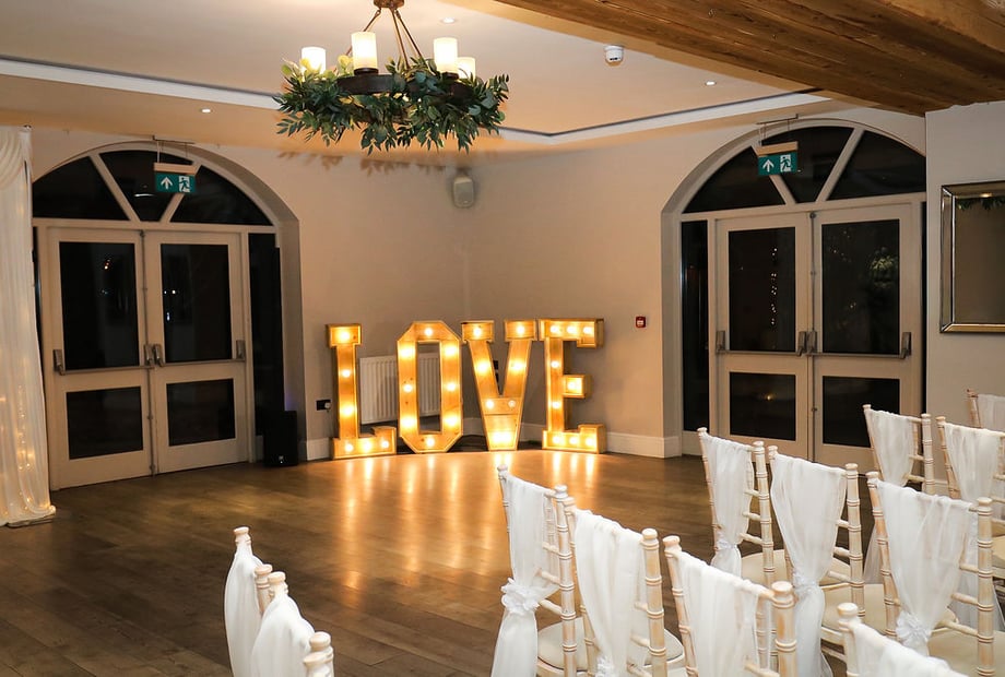 Choose to exchange vows in our beautifully designed ceremony suite or hold a church service at one of the charming nearby parish churches. Wherever you say your vows, the peaceful setting around Pyes Mill adds a sense of calm that sets the tone for your whole day.