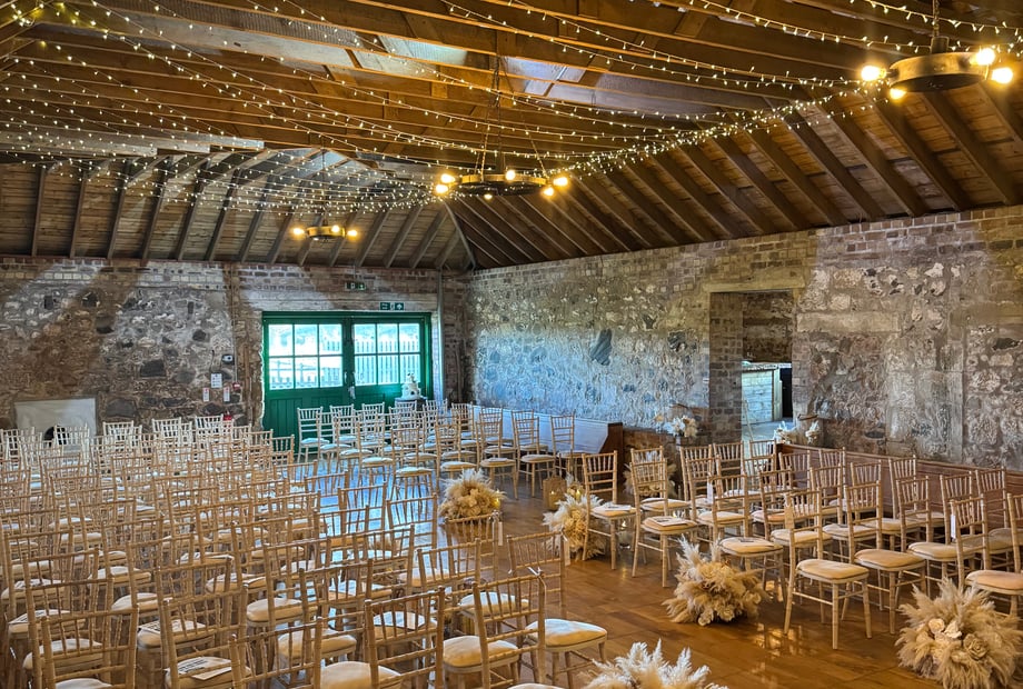 Built well over a century ago, the Rhynd has been owned by the Foster family since the early 1950s, and up until the late 1990s the space was a working farm. The event space was a cattle shed and has been lovingly restored keeping all the unique features in place, creating a truly romantic rustic barn feel. We offer a variety of options from one day hire, to 3-day access - we don't want you to feel rushed! All heating and lighting is included for the day and you are free to choose whichever suppliers you love the most! The venue can hold up to 180 seated and up to 230 for your evening. We also have a gorgeous Farmhouse onsite that can sleep up to 10 people, as well as our forest rooms, which are modern cabins nestled in the woods, each sleeping 2. The venue is situated just 15 minutes from St Andrews and Dundee. With ever changing fields in crop, Tentsmuir forest and Kinshaldy beach only 5minutes away there are plenty of photo opportunities! Your wedding coordinator is happy to be as involved as you like and can be there on your big day to give you peace of mind if required.