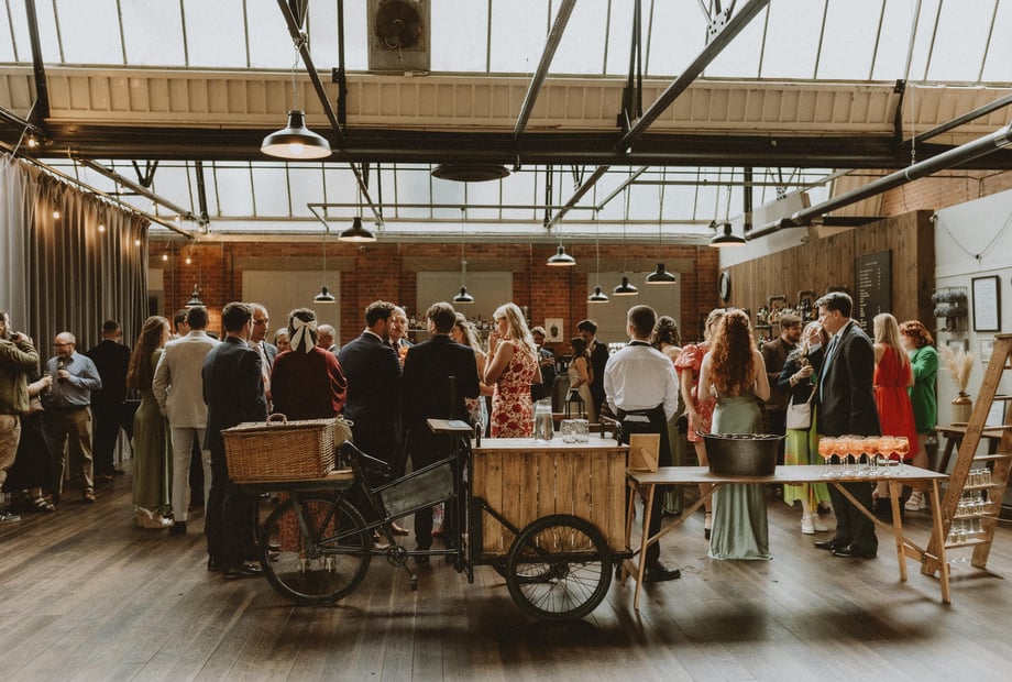 Carefully renovated to honour the building’s heritage, the venue features stripped wooden floors, exposed brickwork, wrought iron pillars and high ceilings – creating the perfect backdrop for an industrial-chic wedding.