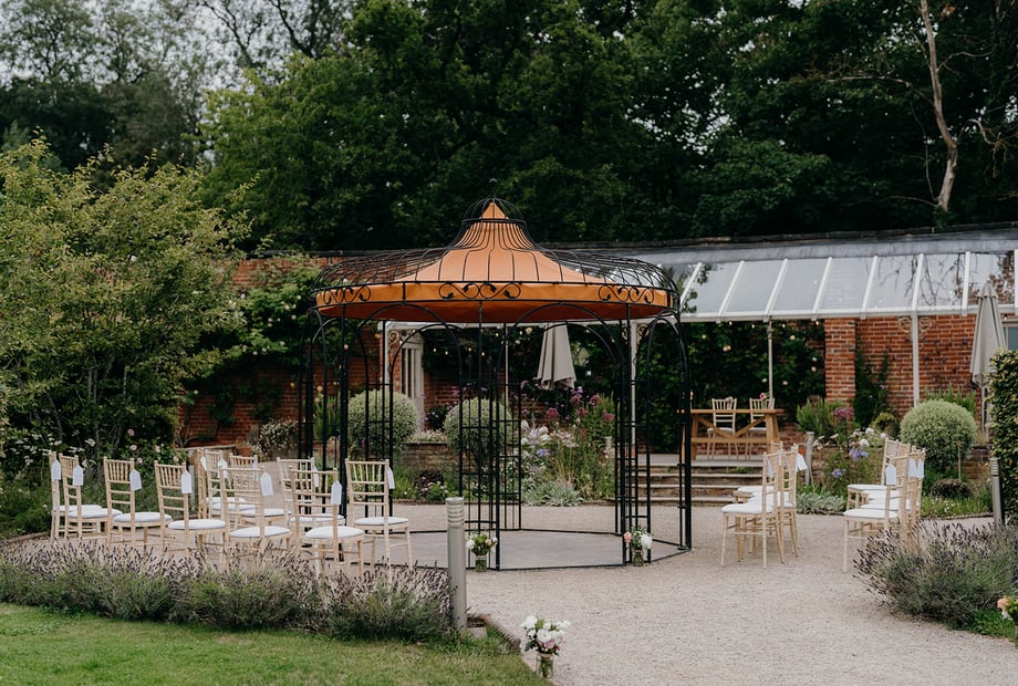 Yes, The Walled Garden is licensed for outdoor garden ceremonies. Couples can exchange vows under the old converted greenhouse surrounded by rose-covered rustic brick walls and beautiful flower beds.
