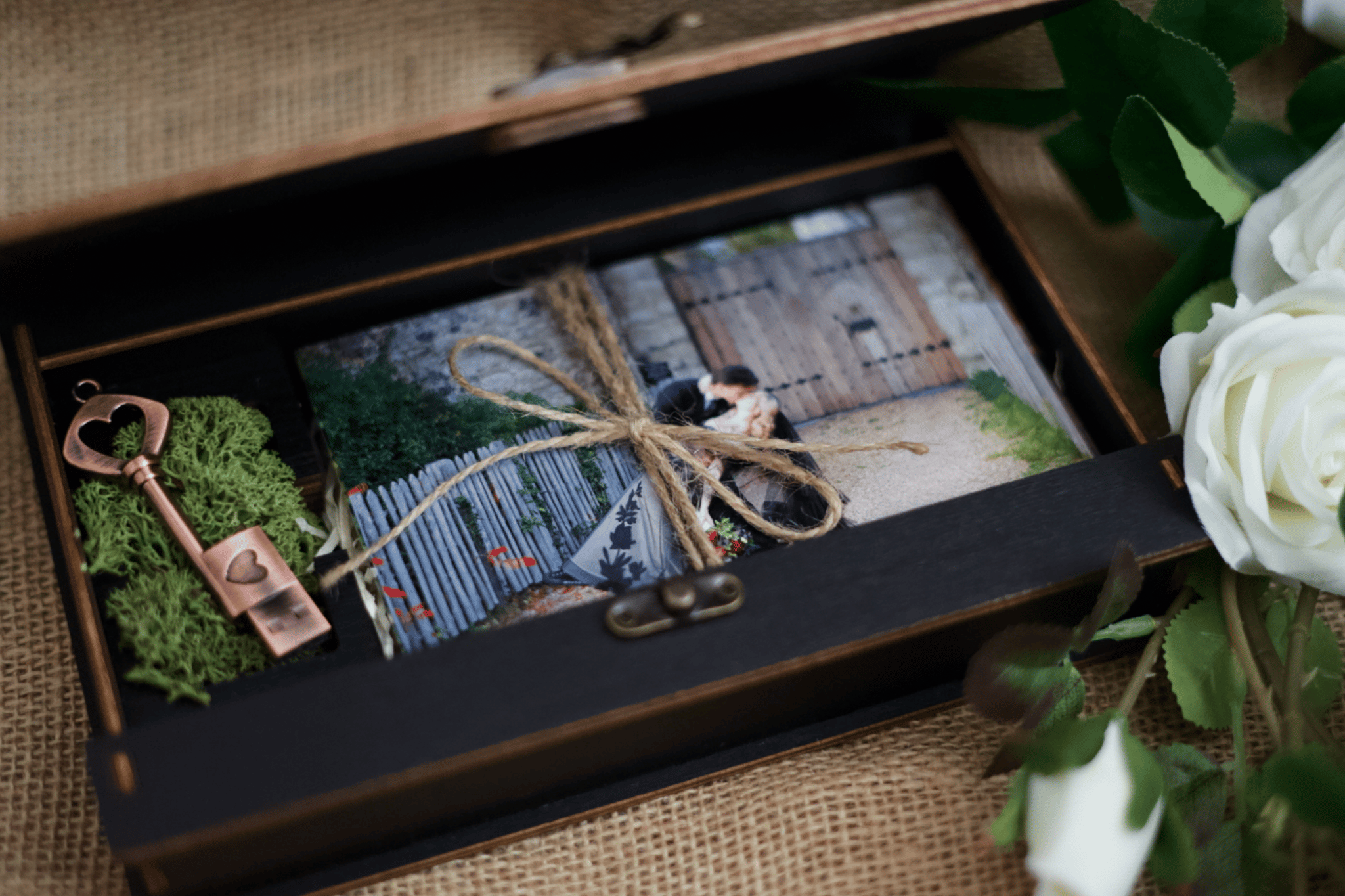 As an expert wedding videographer, Wedding In Motion uses natural light and cinematic techniques to create a lasting legacy of your memories. Your final films arrive on a USB stick, presented in a beautifully engraved wooden photo box—a timeless keepsake of your wedding day. Couples consistently praise how perfectly their private moments and love stories are captured, making these films treasured family heirlooms.