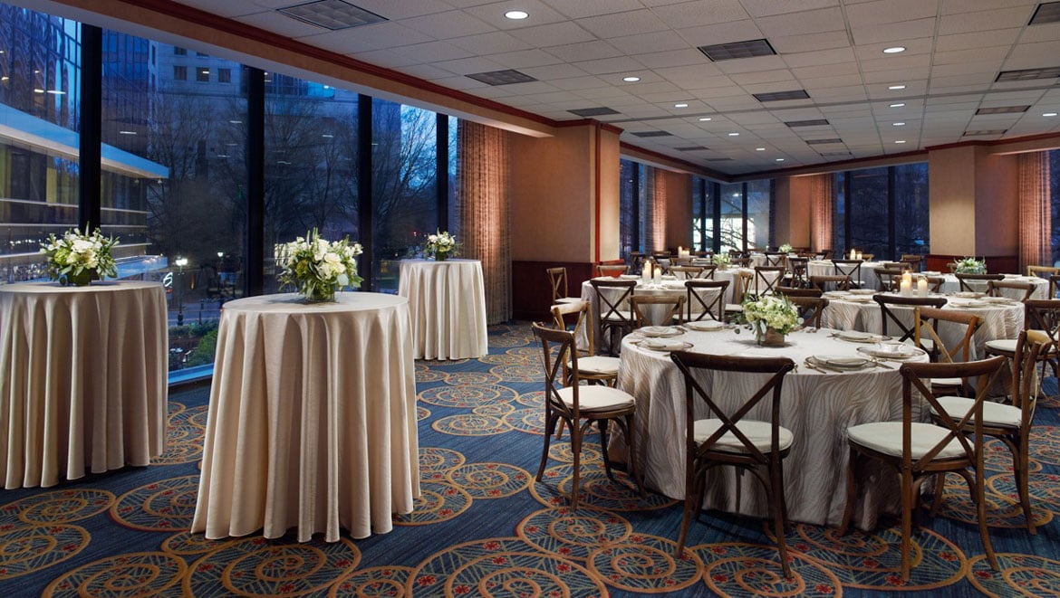 To have and to hold on your perfect day Kimpton Tryon Park Hotel is ready to take our elegantly modern setting with touches of southern charm and create the wedding of your dreams. Bridal showers, rehearsal dinners, and post wedding brunches come to life through our inviting Italian inspired dishes. Wedding Room Block Offer: Earn up to 10% off our Best Flexible Rate for Thursday - Sunday stays (Sundays will be available over holiday weekends). For contracted room blocks please contact [email protected]. A Charlotte Wedding Venue to fit all your needs We’re proud to offer a bounty of options when it comes to mapping out your big day. Weddings for up to 150 guests can be held in a mix of unique spaces awaiting your personal touch, including elegant ballrooms with vaulted ceilings and our sleek and modern rooftop lounge. Intimate and casual receptions for up to 100 guests also can take place on our rooftop wraparound terrace, where sweeping skyline views steal the show.