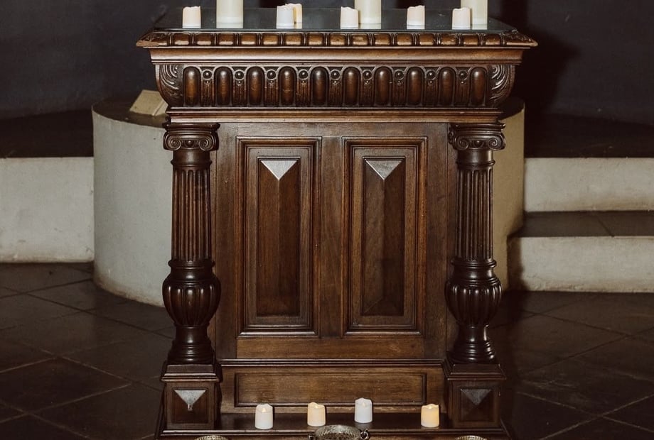 The chapel is furnished with unique wooden chairs and provides a warm, intimate atmosphere with a beautiful acoustic sound.